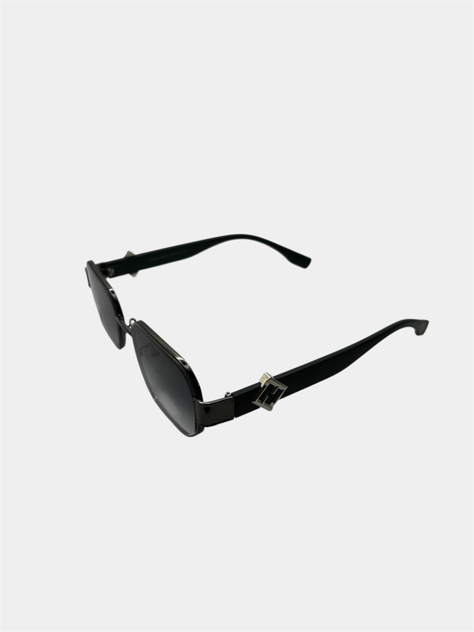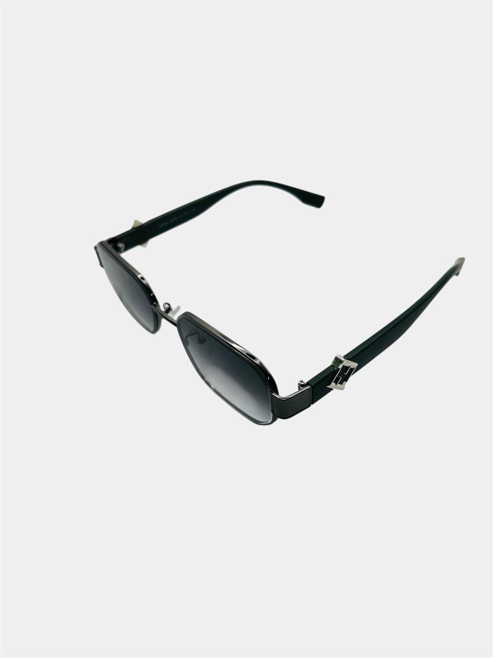 يتميز الإطار بتصميم سداسي (Hexagonal) رفيع وأنيق يجمع بين المعدن الأسود اللامع والأذرع السوداء، مما يمنحها مظهراً درامياً وحديثاً. العدسات تأتي بلون رمادي متدرج (Gradient)، لتوفير حماية مريحة للعين ومظهر غامض وجذاب.