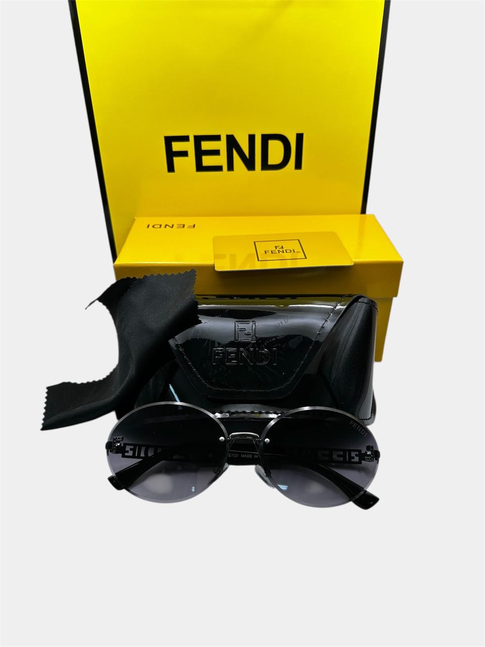 نظارة شمسية فندي نسائية (نسخة فئة أولى) – تصميم دائري بدون إطار | أذرع بشعار الماركة